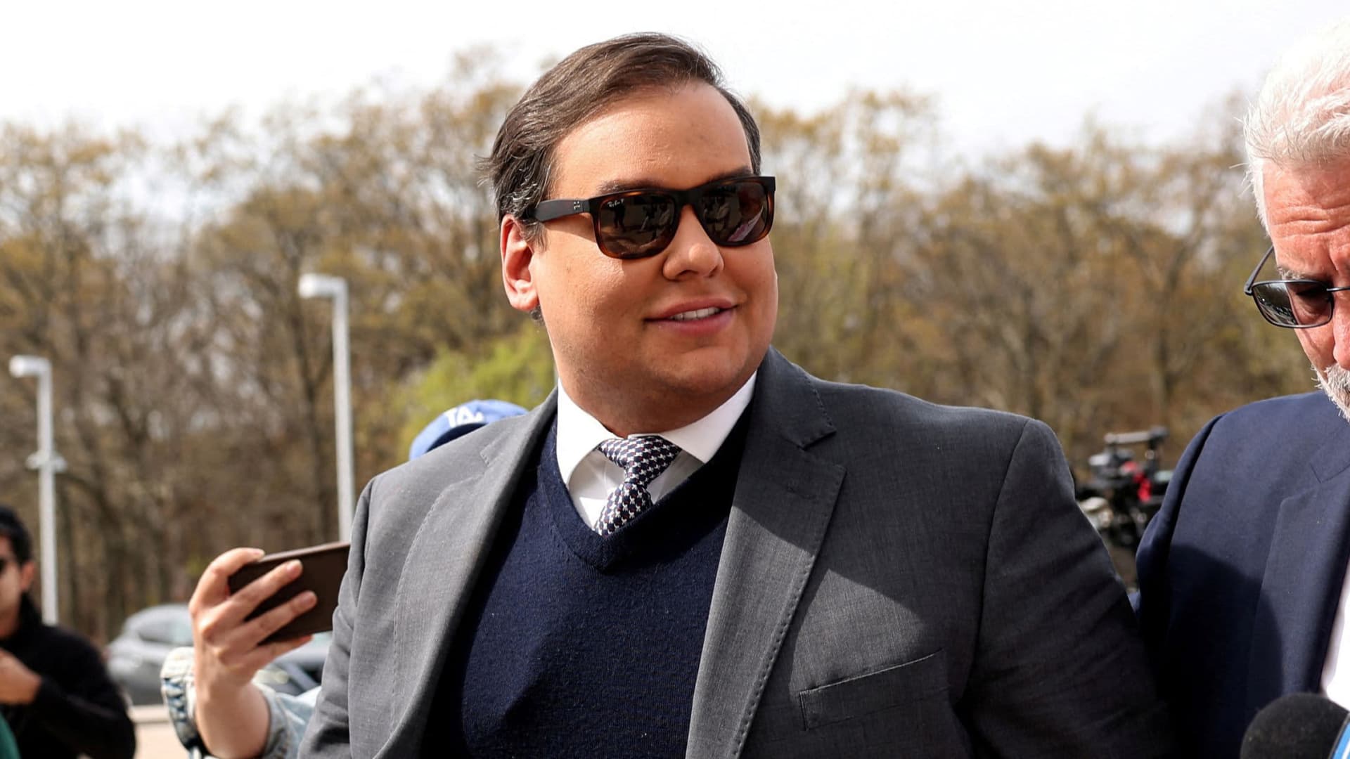 George Santos, who was expelled from the U.S. House of Representatives, arrives to be sentenced on his criminal corruption charges at the Central Islip Federal Courthouse in Central Islip, New York, United States, on April 25, 2025.